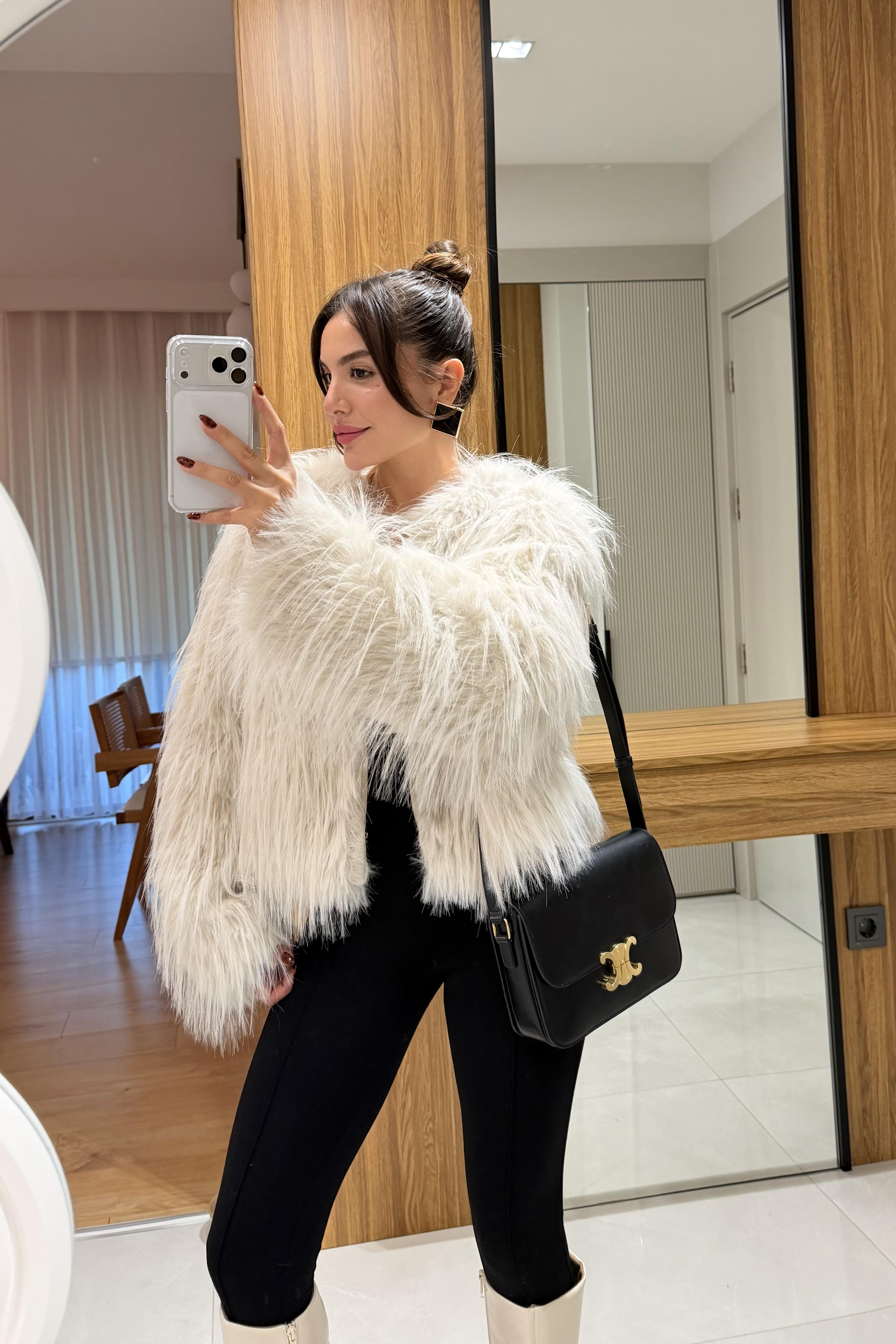 Bellamy Ekru Saçaklı Kürk