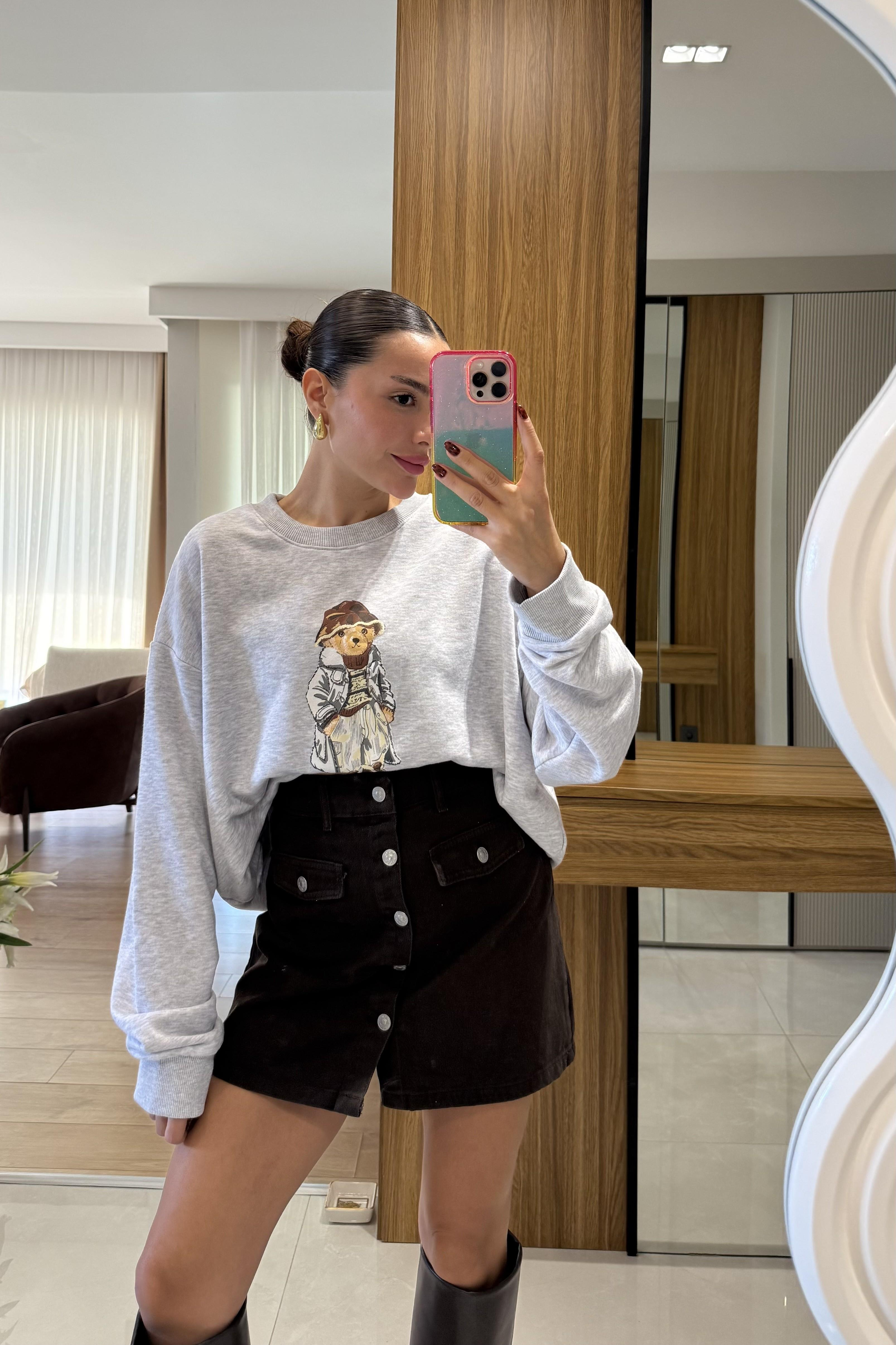 Bonia Gri Ayı Baskılı Şardonsuz Sweatshirt