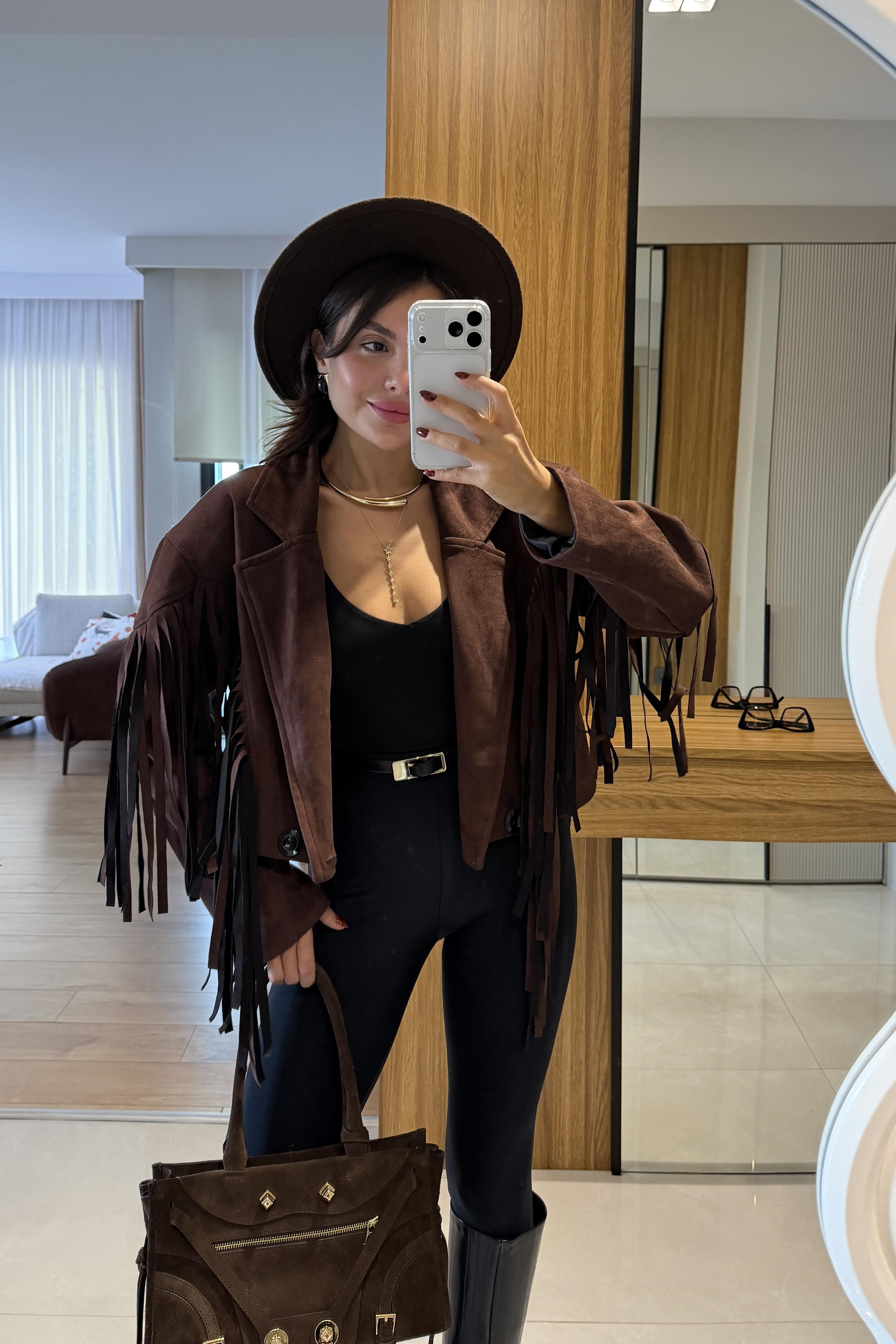 Calixa Kahve Püsküllü Süet Ceket (Z5449)