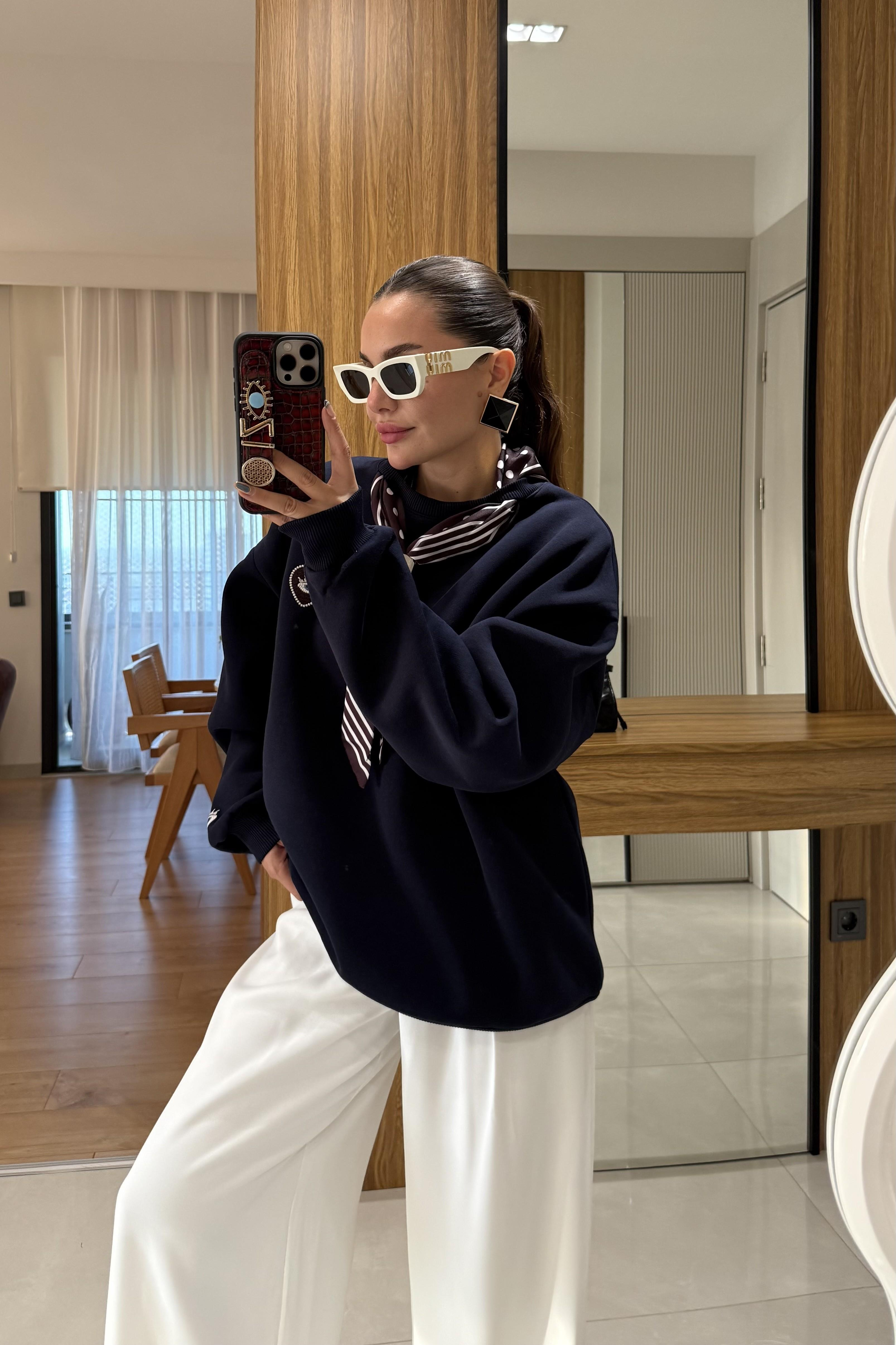 Deer Fular Detaylı Tasarım Sweatshirt (Z5257)