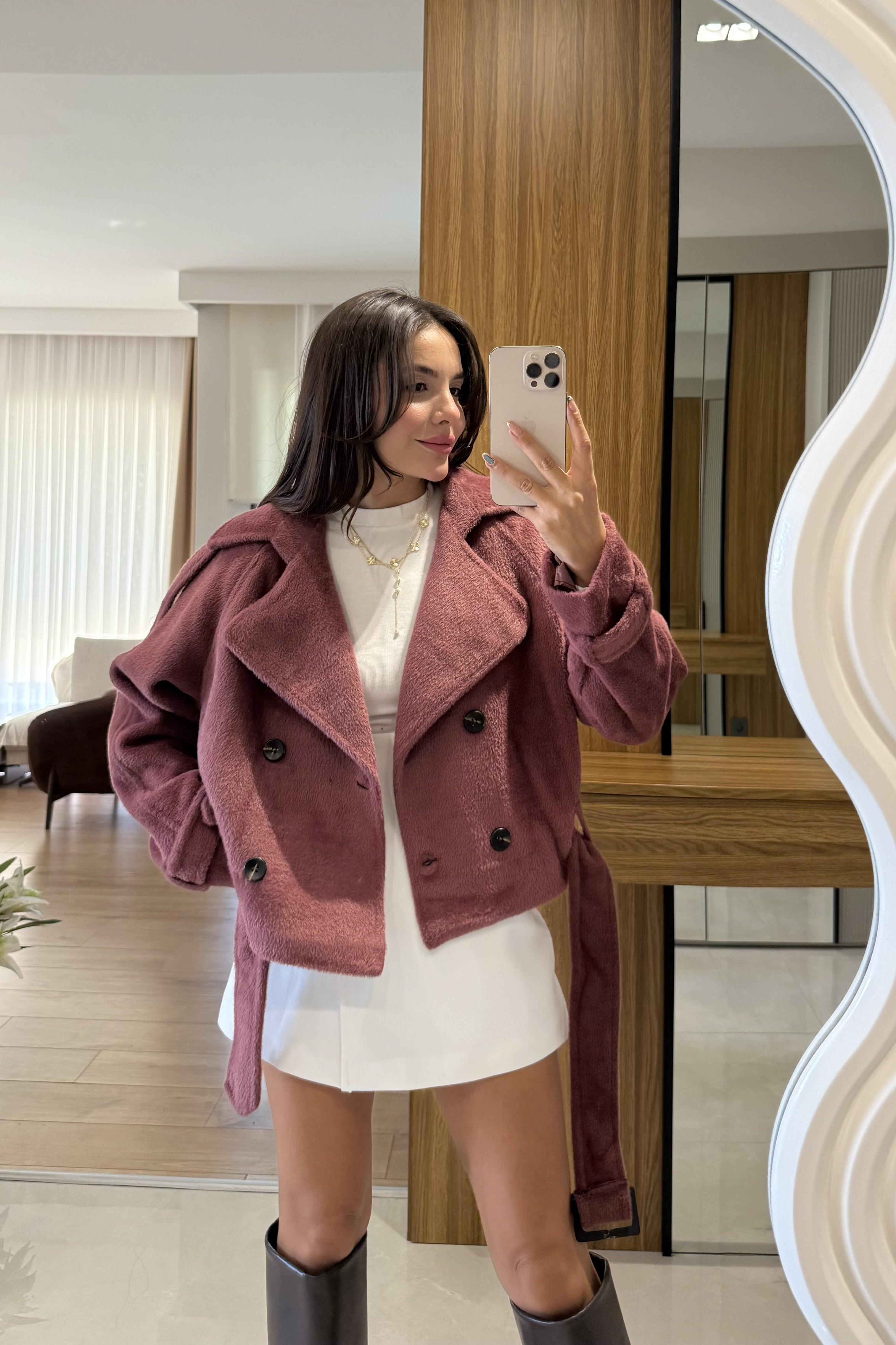 Devida Gül Kurusu Kemerli Peluş Ceket (Z5293)