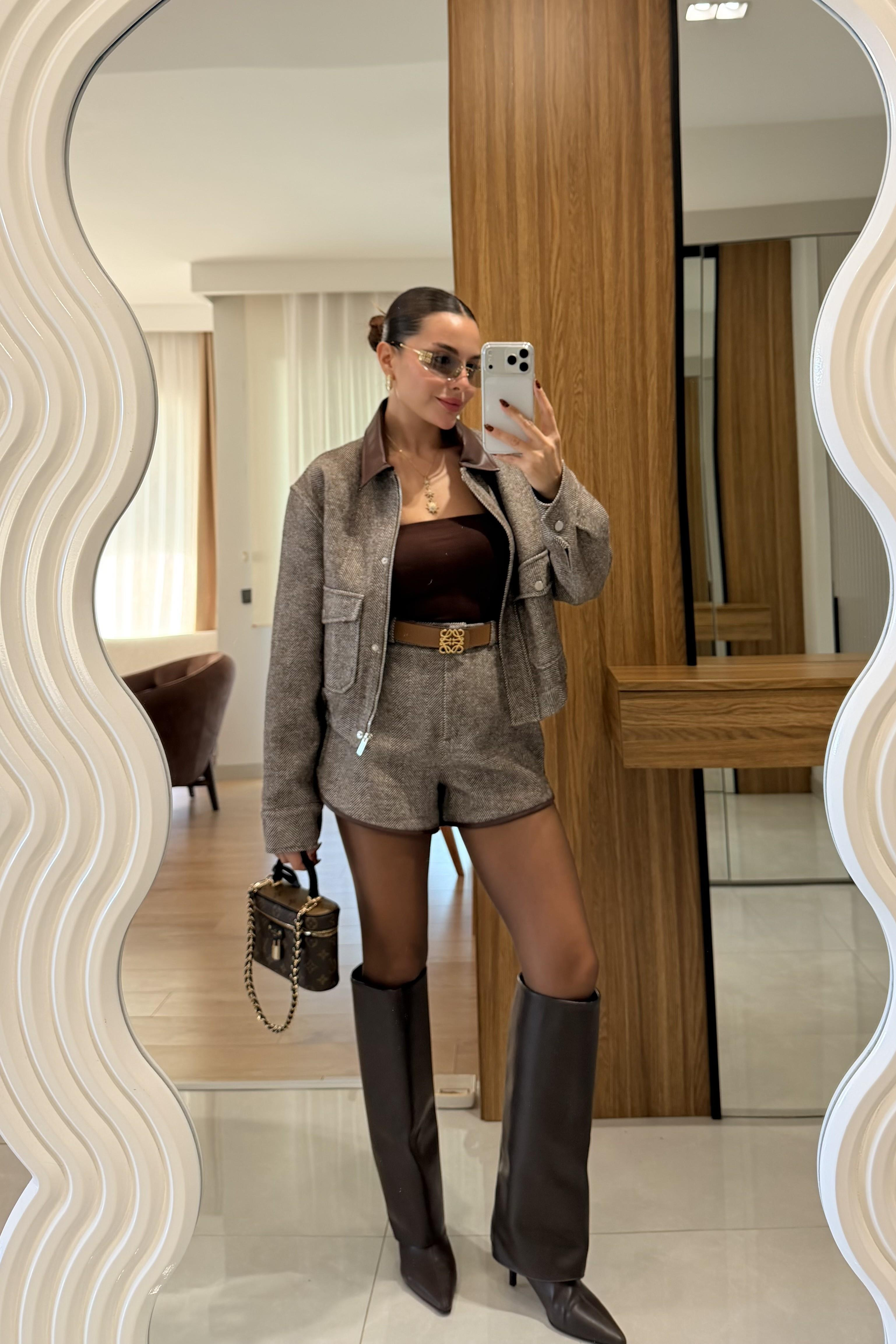 Diore Kahve Balıksırtı Şort (Z5630)