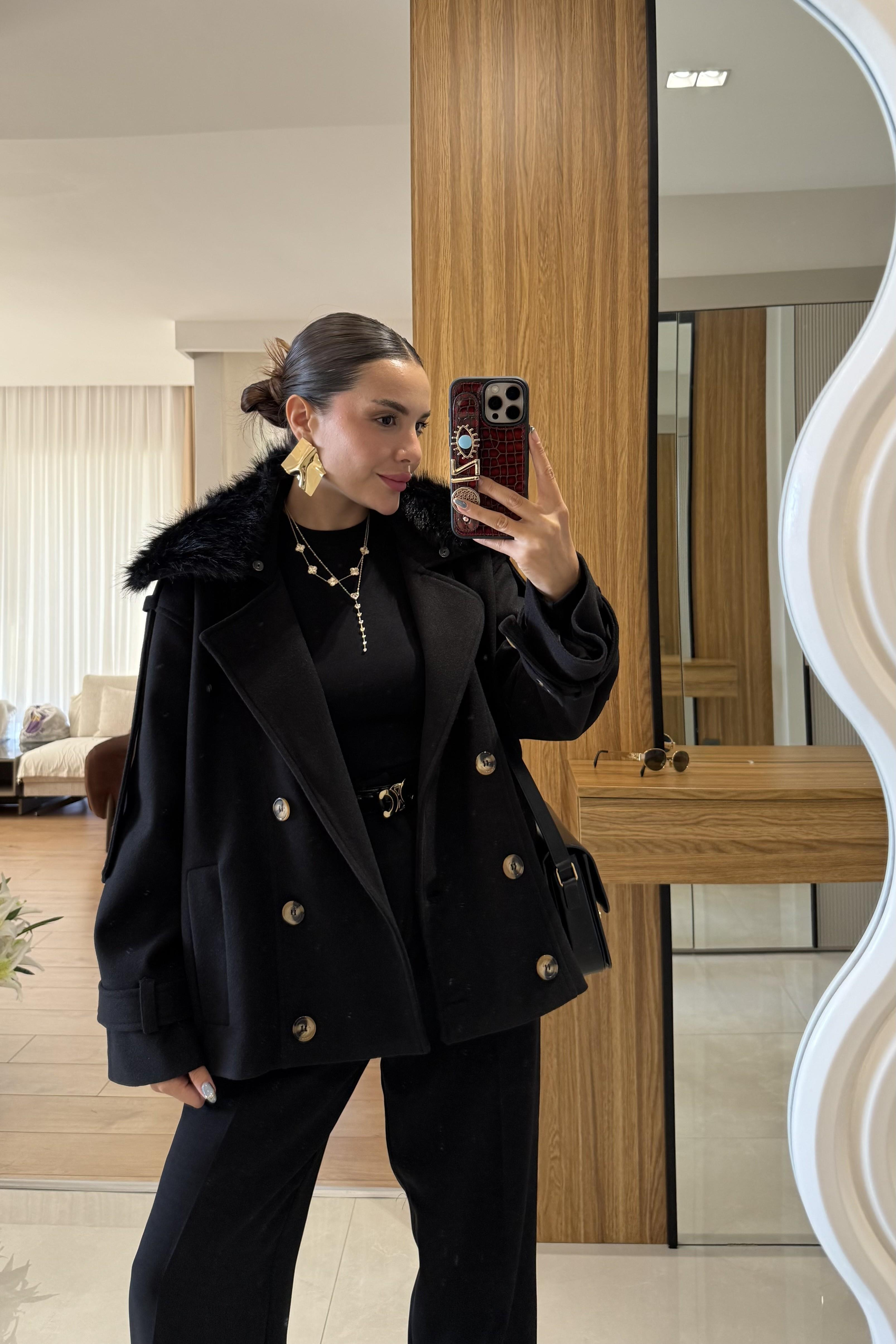 Dragun Siyah Kürkü Çıkarılabilen Kaban (Z5247)