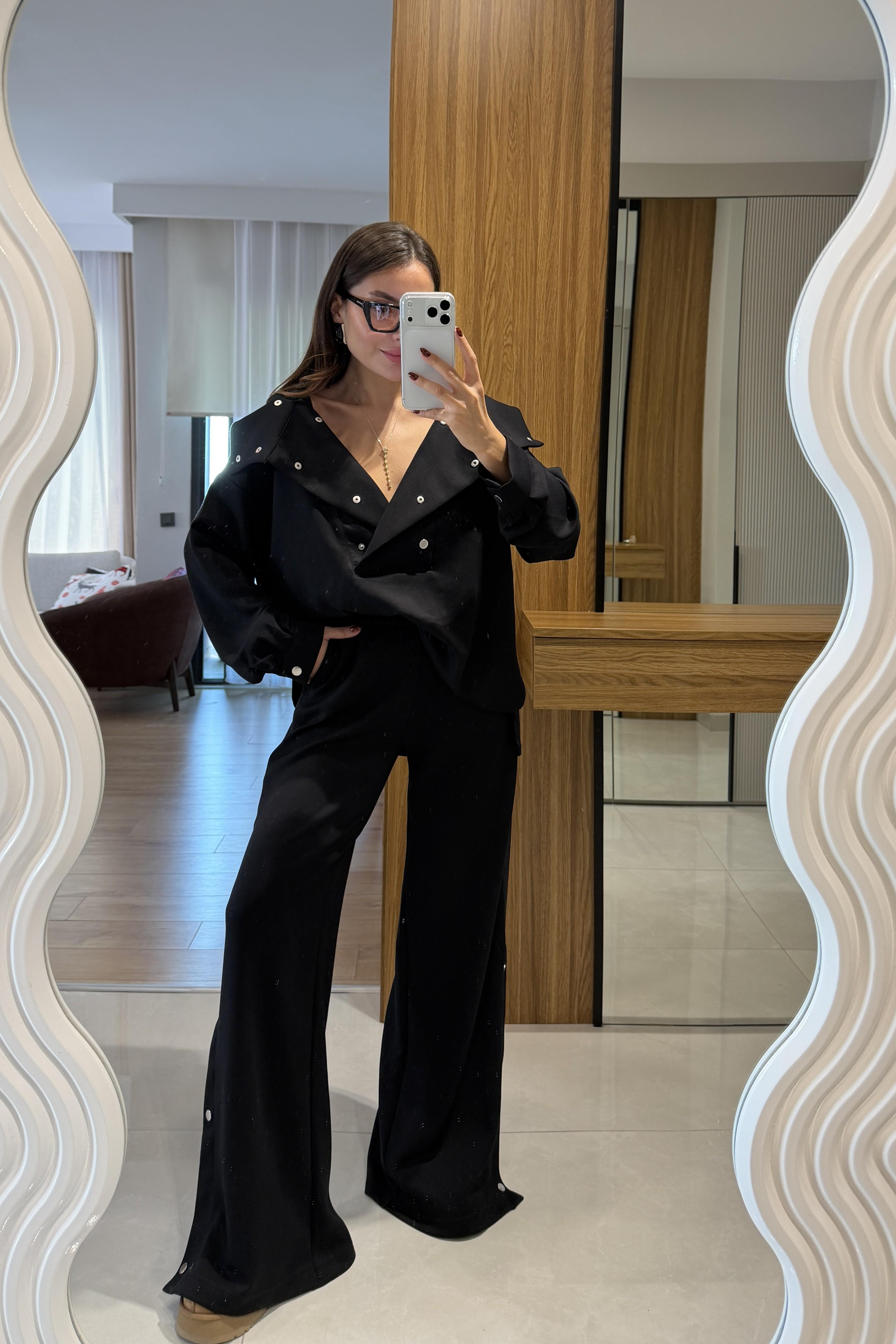 Elara Siyah Modal Çıtçıt Detaylı Takım (Z5444)