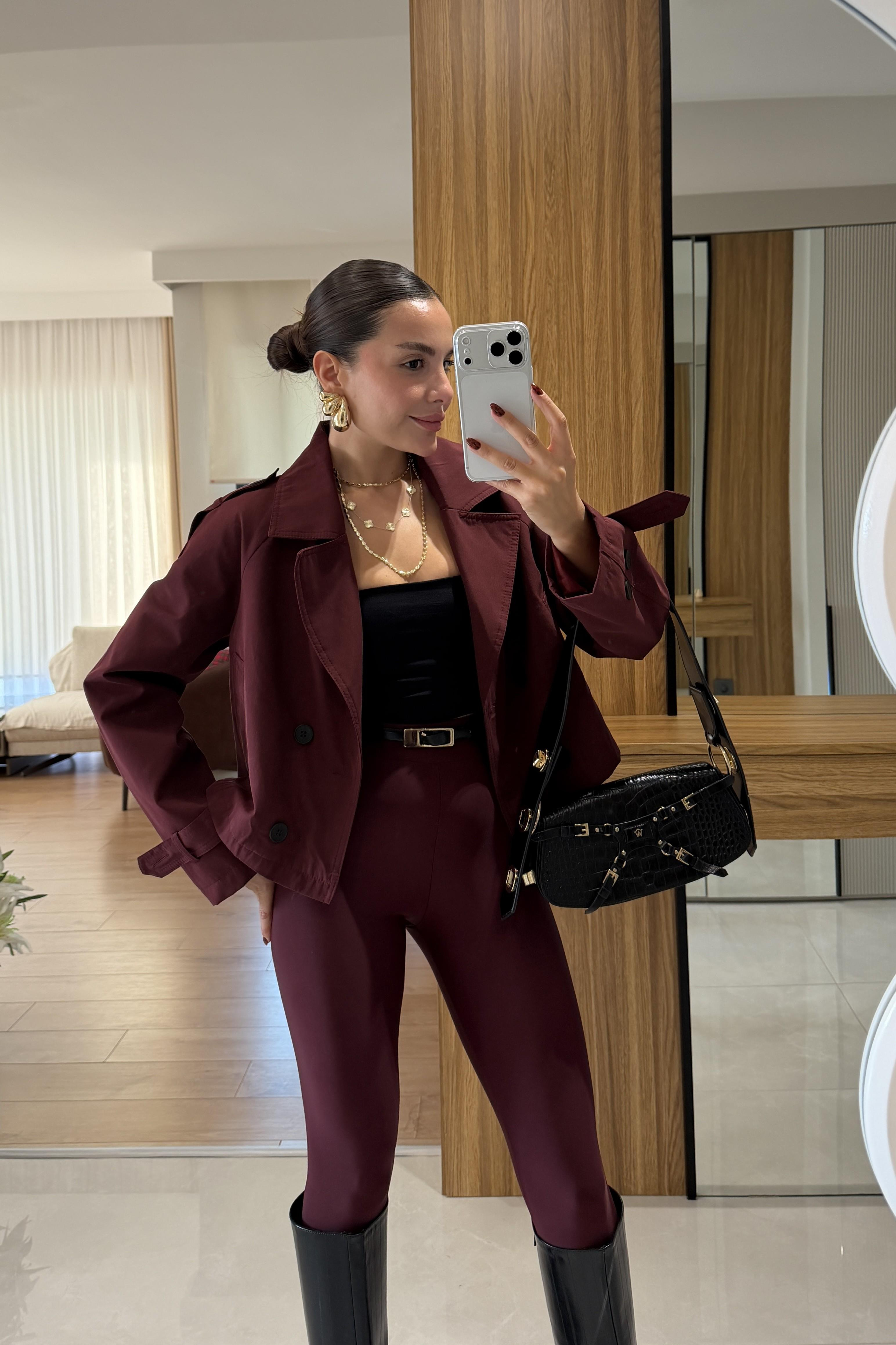 Finex Bordo Kısa Boy Trençkot (Z5484)