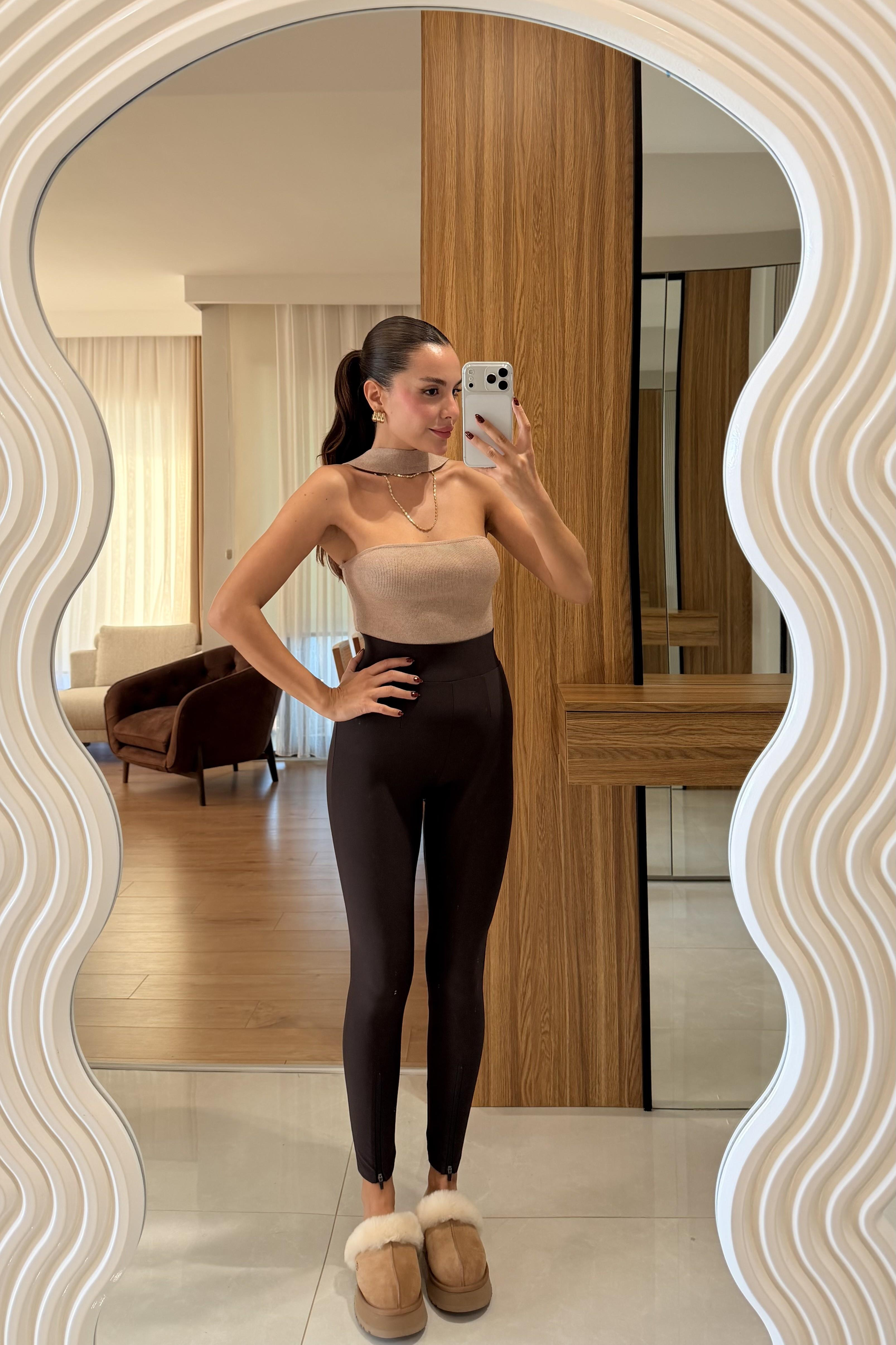 Jump Kahve Fermuarlı Tayt (Z5491)