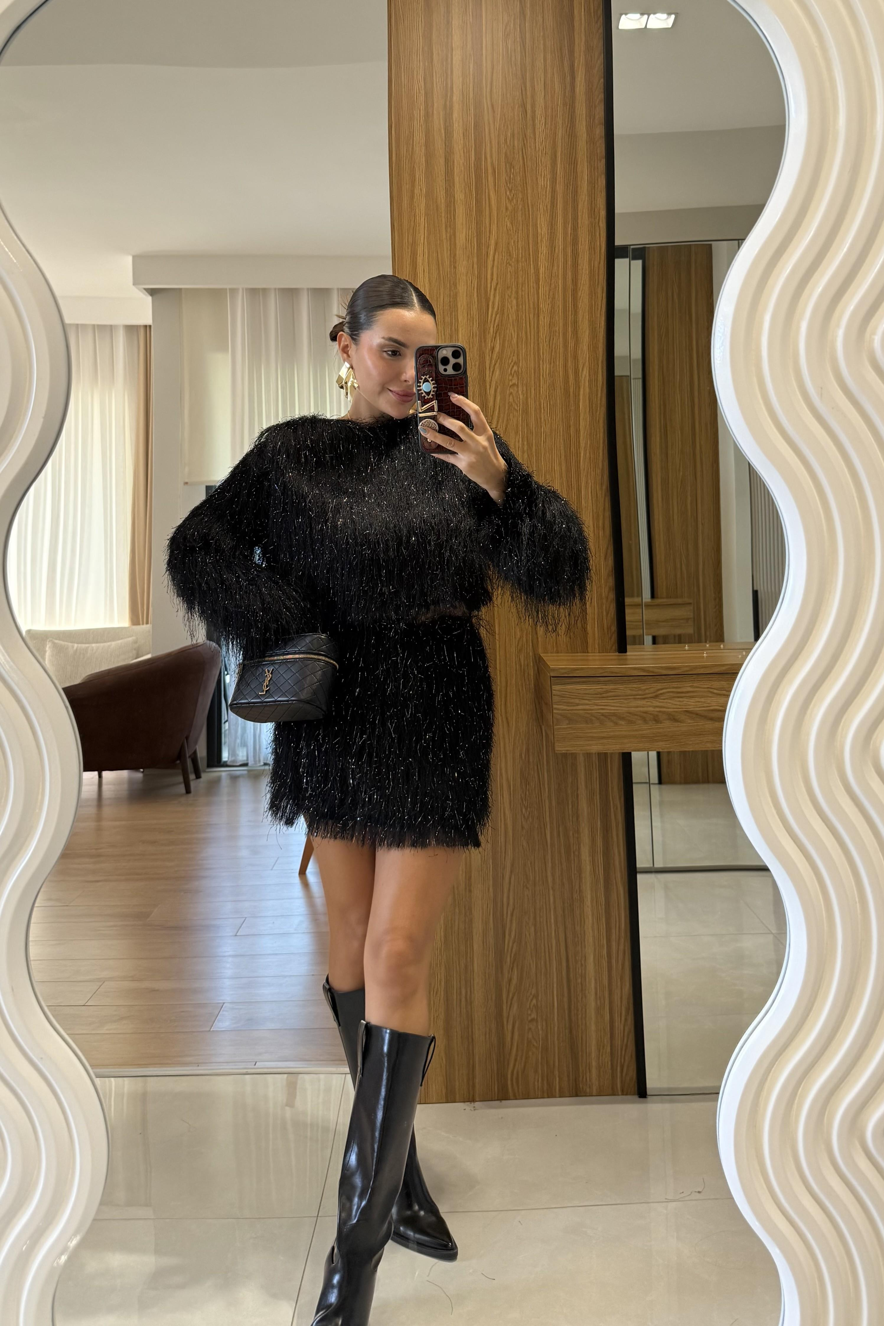 Kiew Siyah Saçaklı Etek Bluz Takım