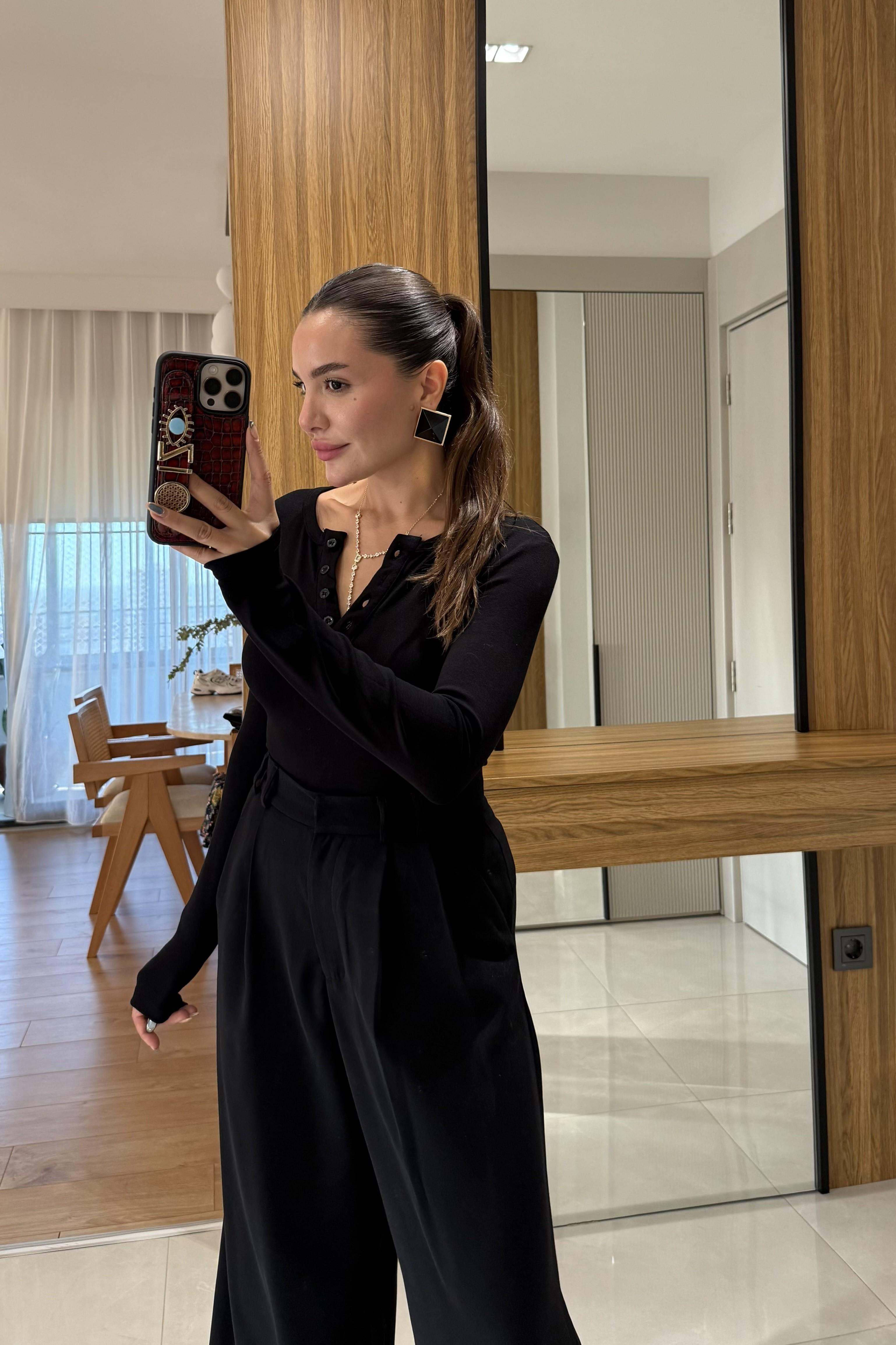 Lefon Siyah Dügmeli Body