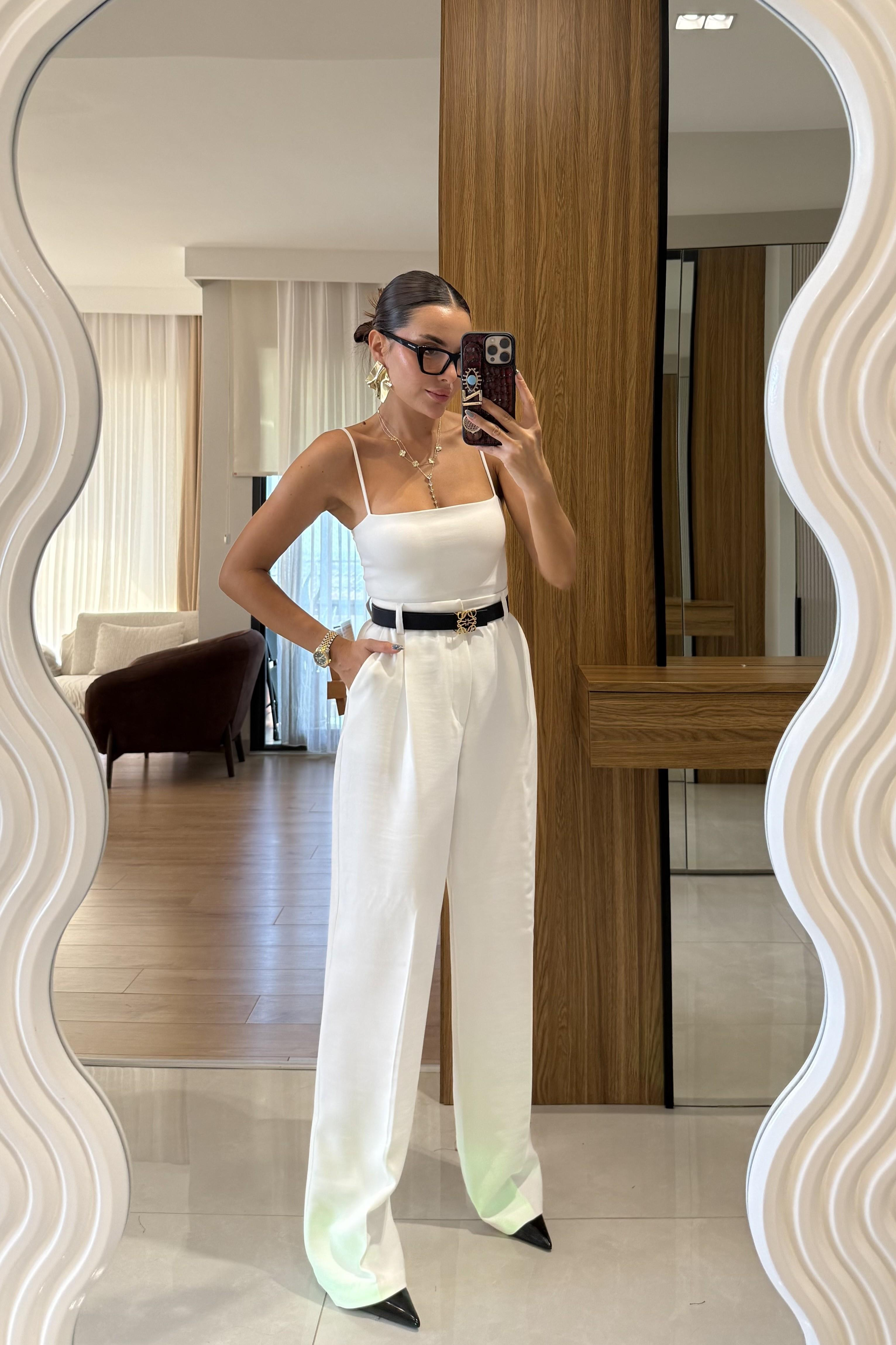 Lucid Beyaz Palazzo İç Göstermeyen Pantolon