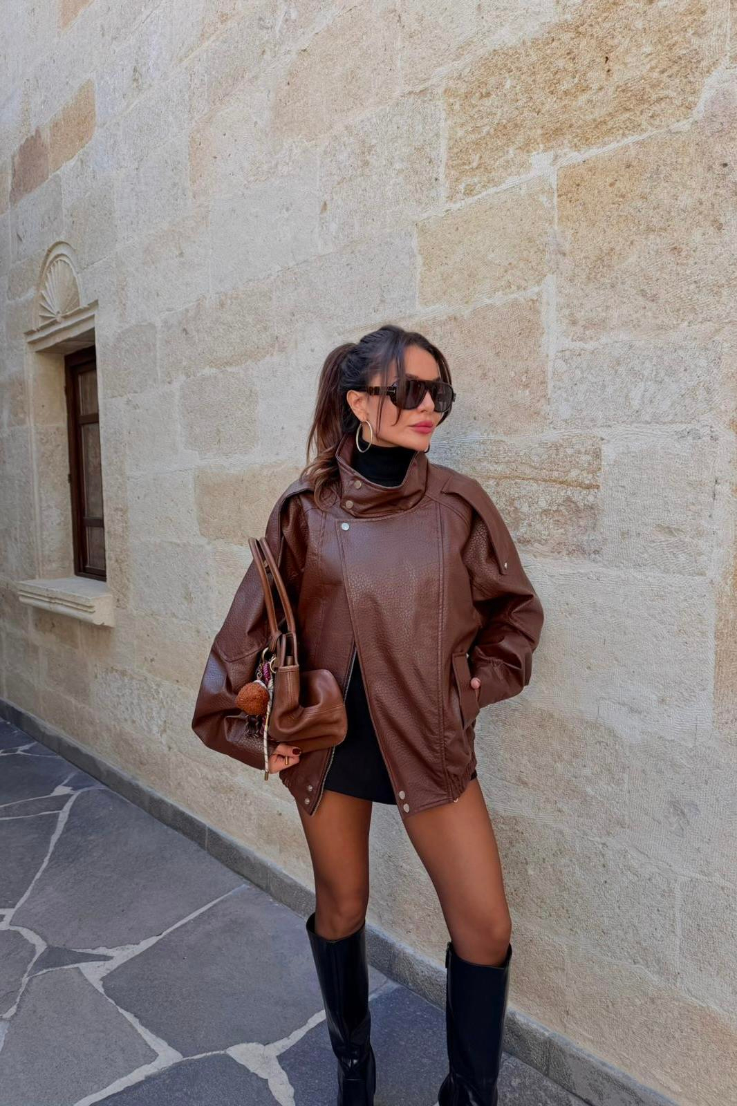 Macoron Taba Pütürlü Deri Ceket (Z5576)