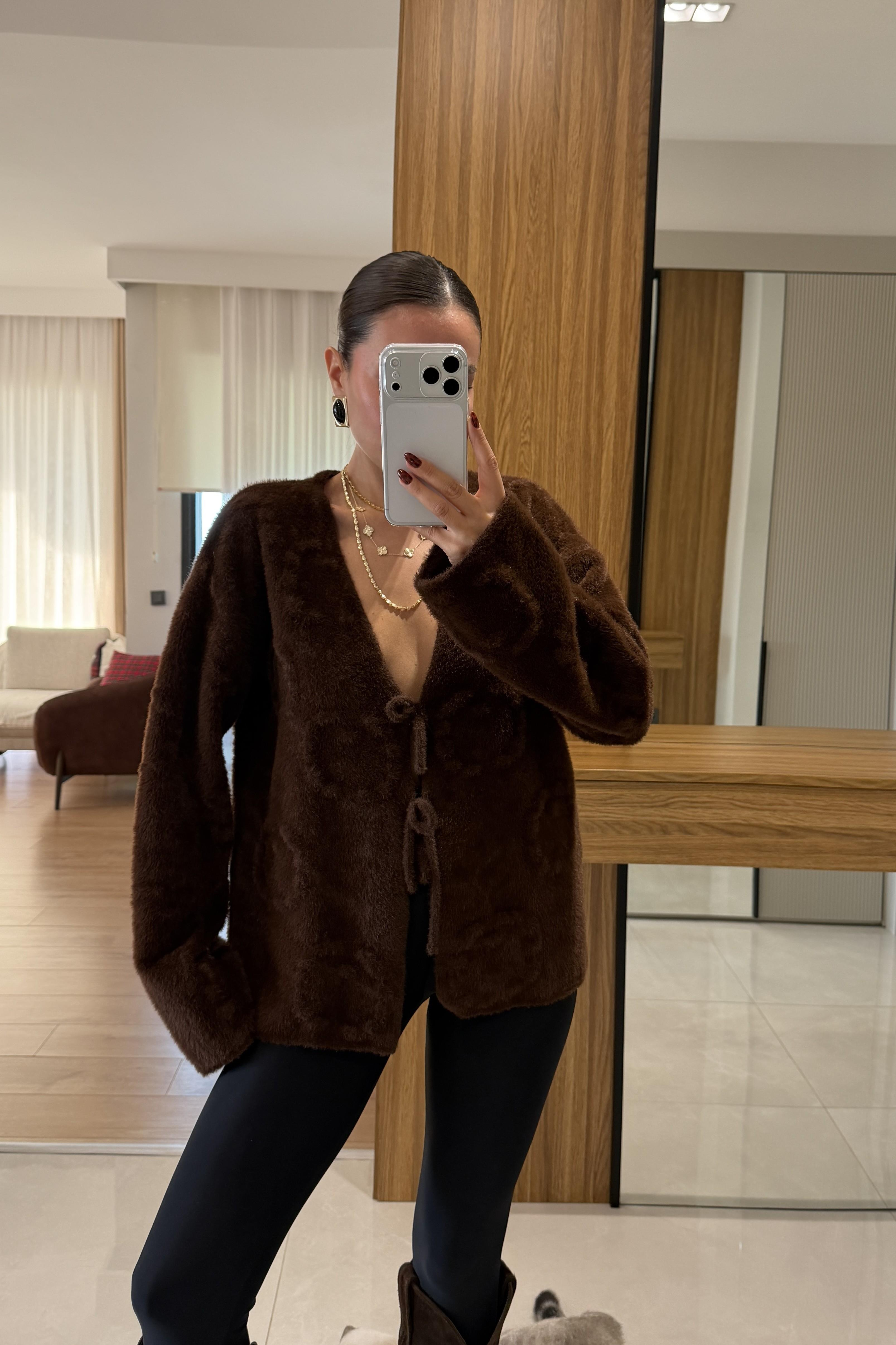 Marvin Kahve Yumoş Dokulu Bağlamalı Hırka (Z5480)