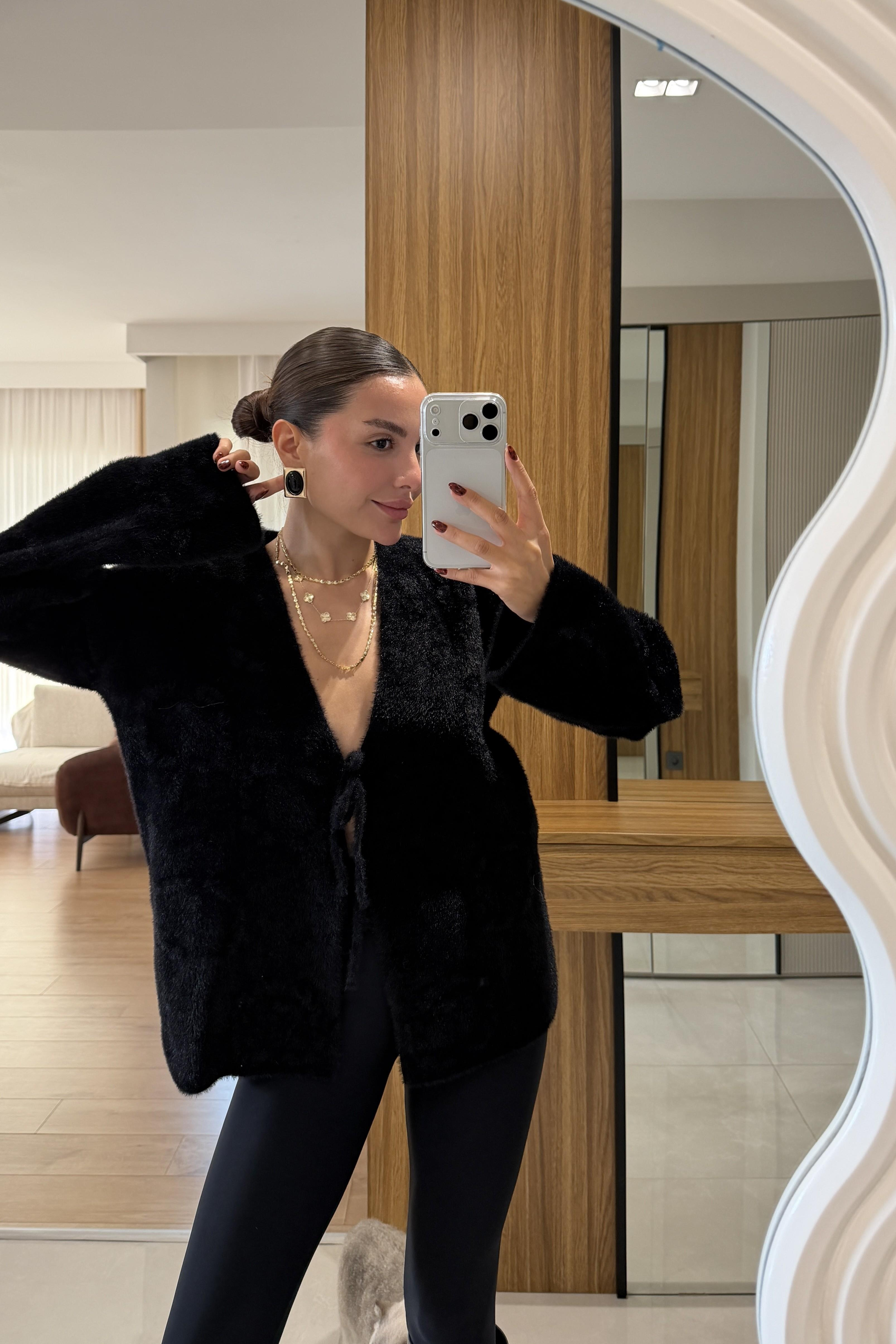 Marvin Siyah Yumoş Dokulu Bağlamalı Hırka (Z5481)