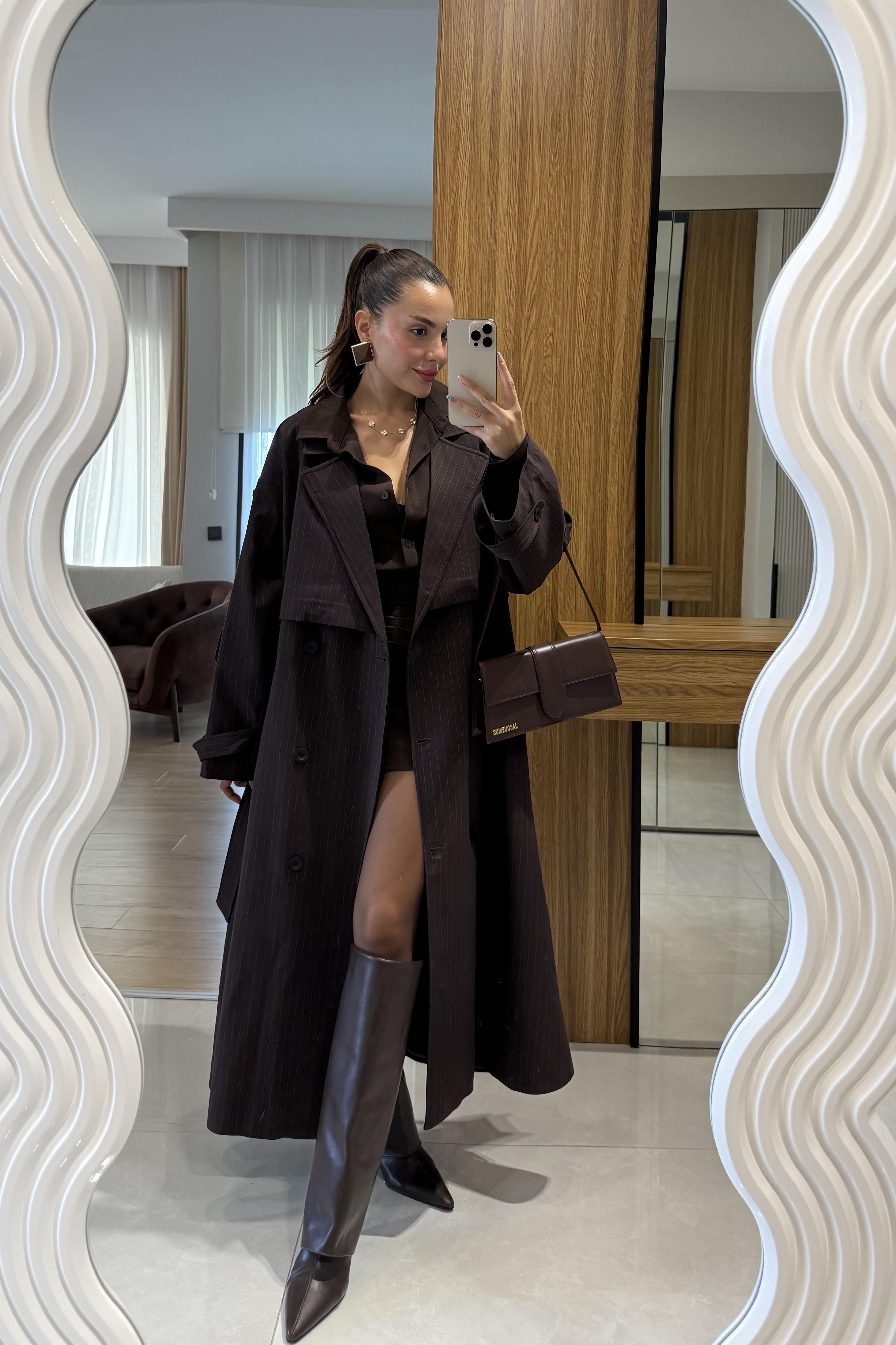 Nesha Kahve Çizgi Detaylı Trenç (Z5206)