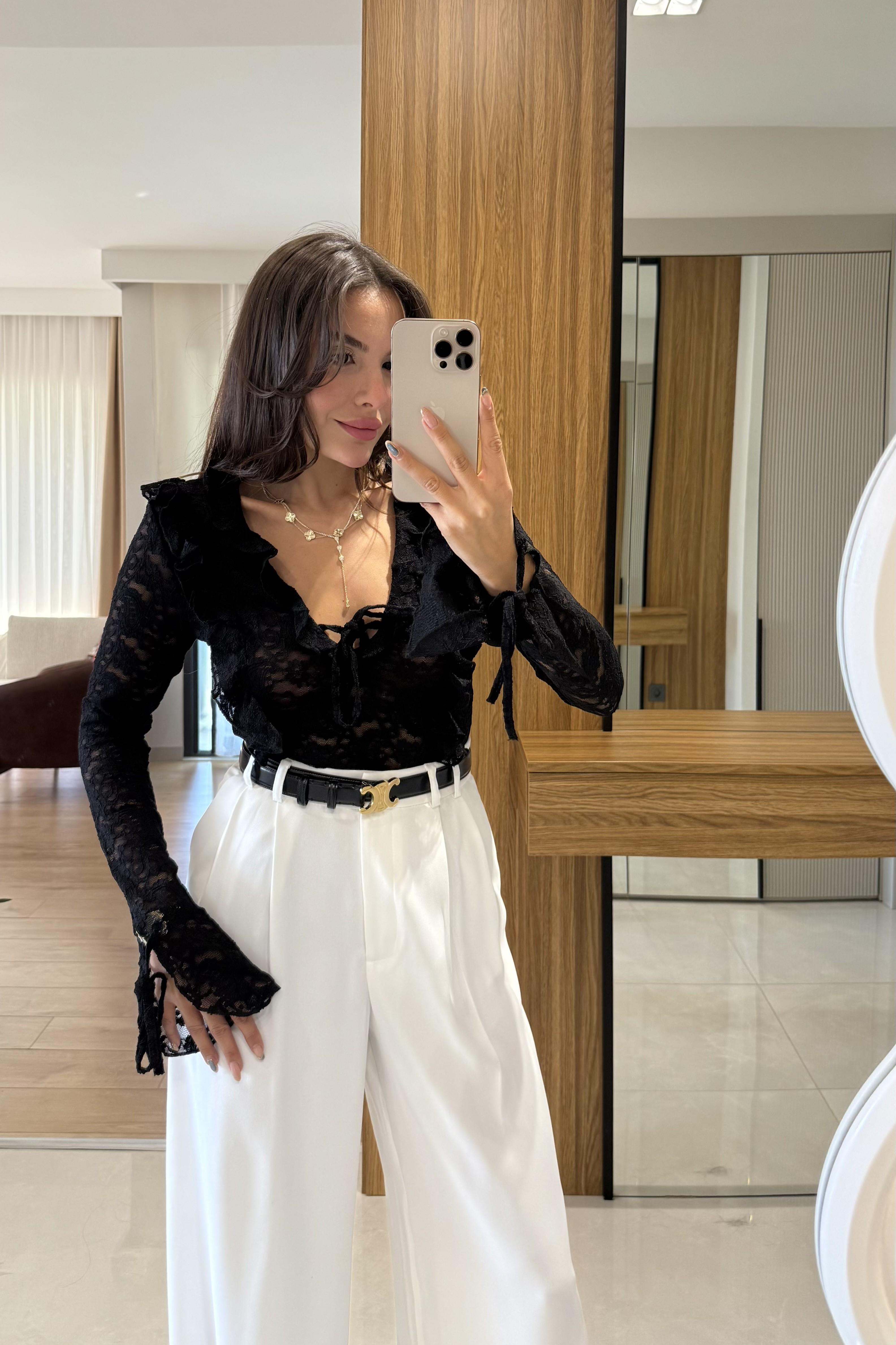 Nilly Siyah Dantel Fırfırlı Bluz