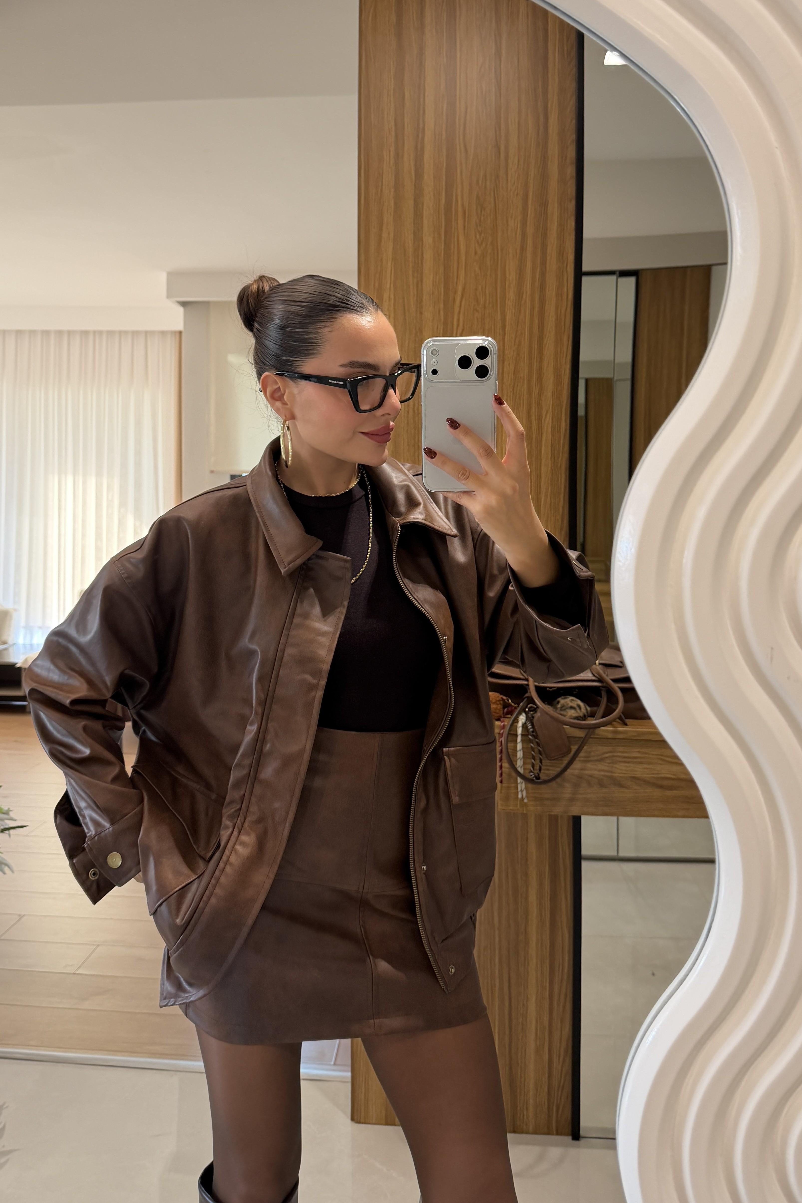 Secret Kahve Yıkama Deri Ceket (Z5434)
