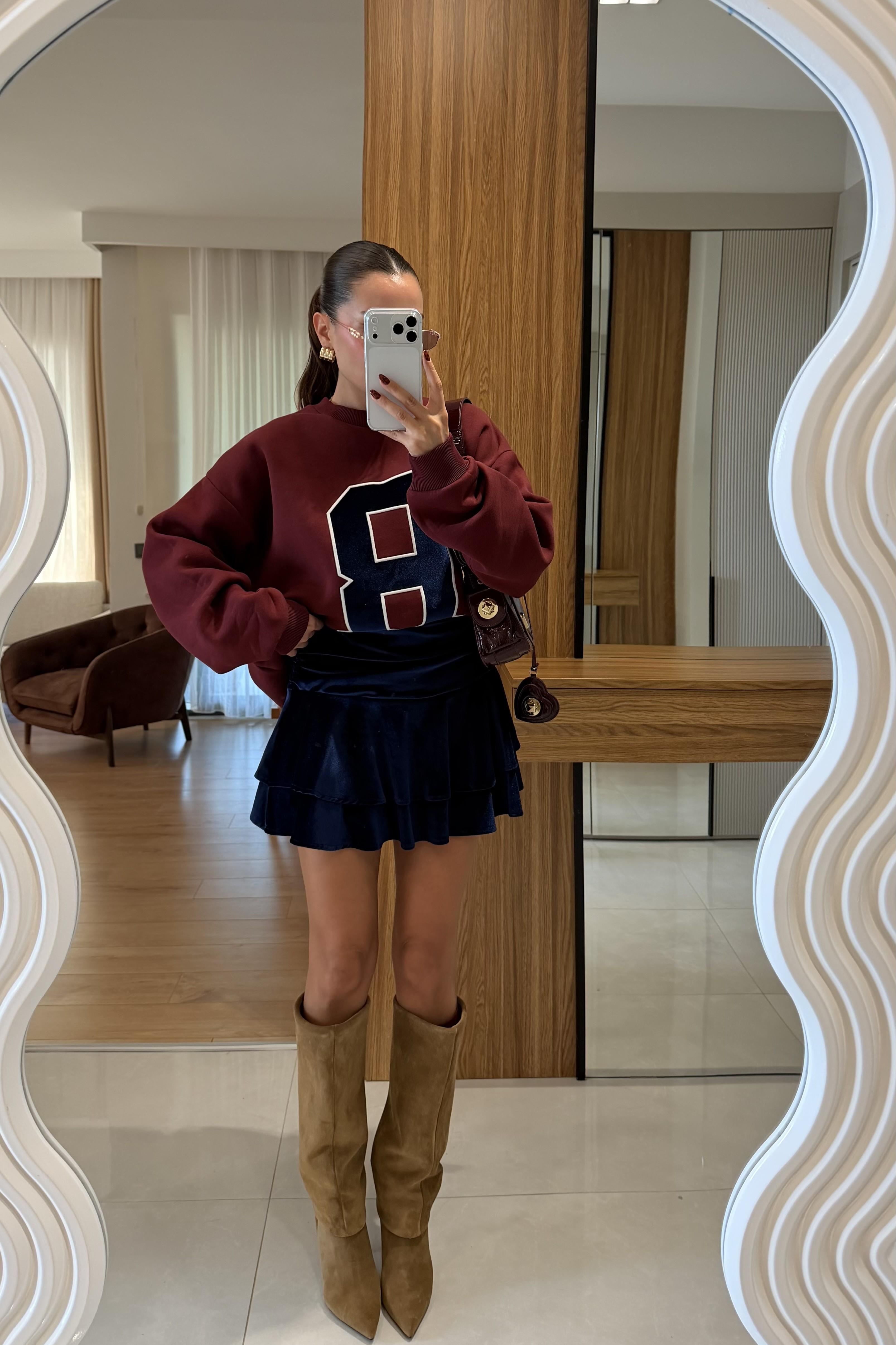 Skirt Lacivert Kadife Şort Etek (Z5497)