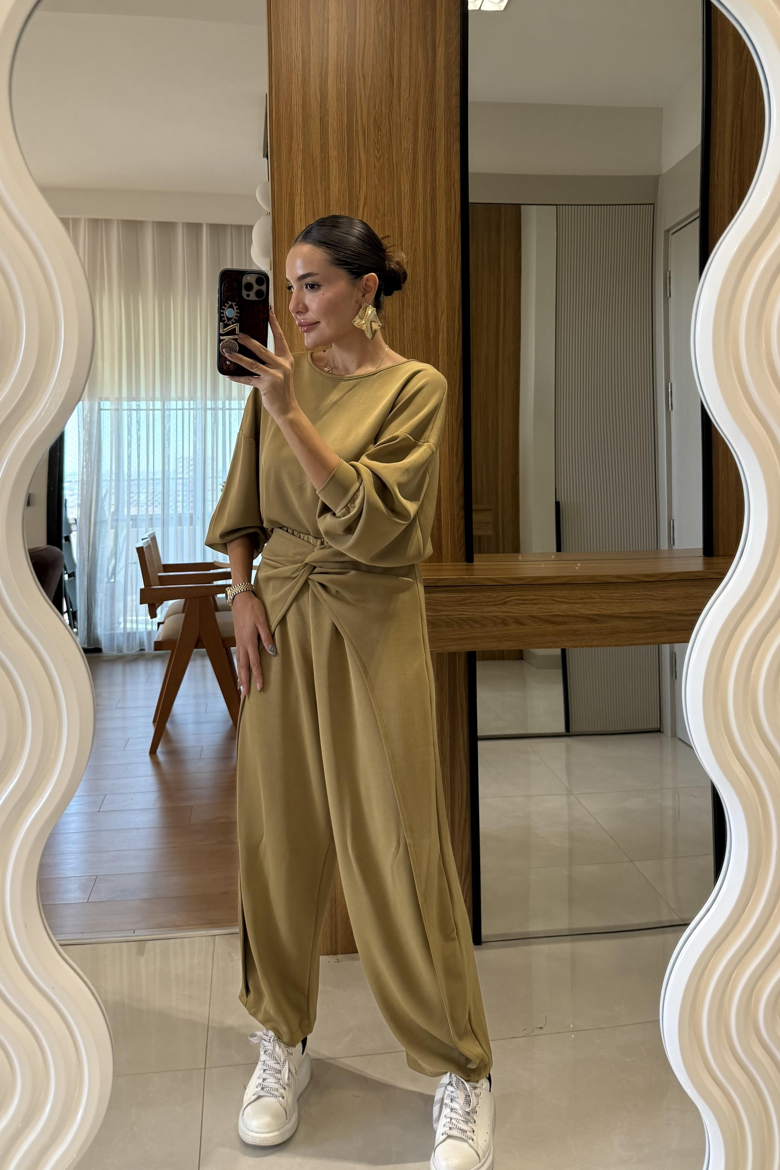 Tesla Haki Sırt Dekolteli Tasarım Modal Takım