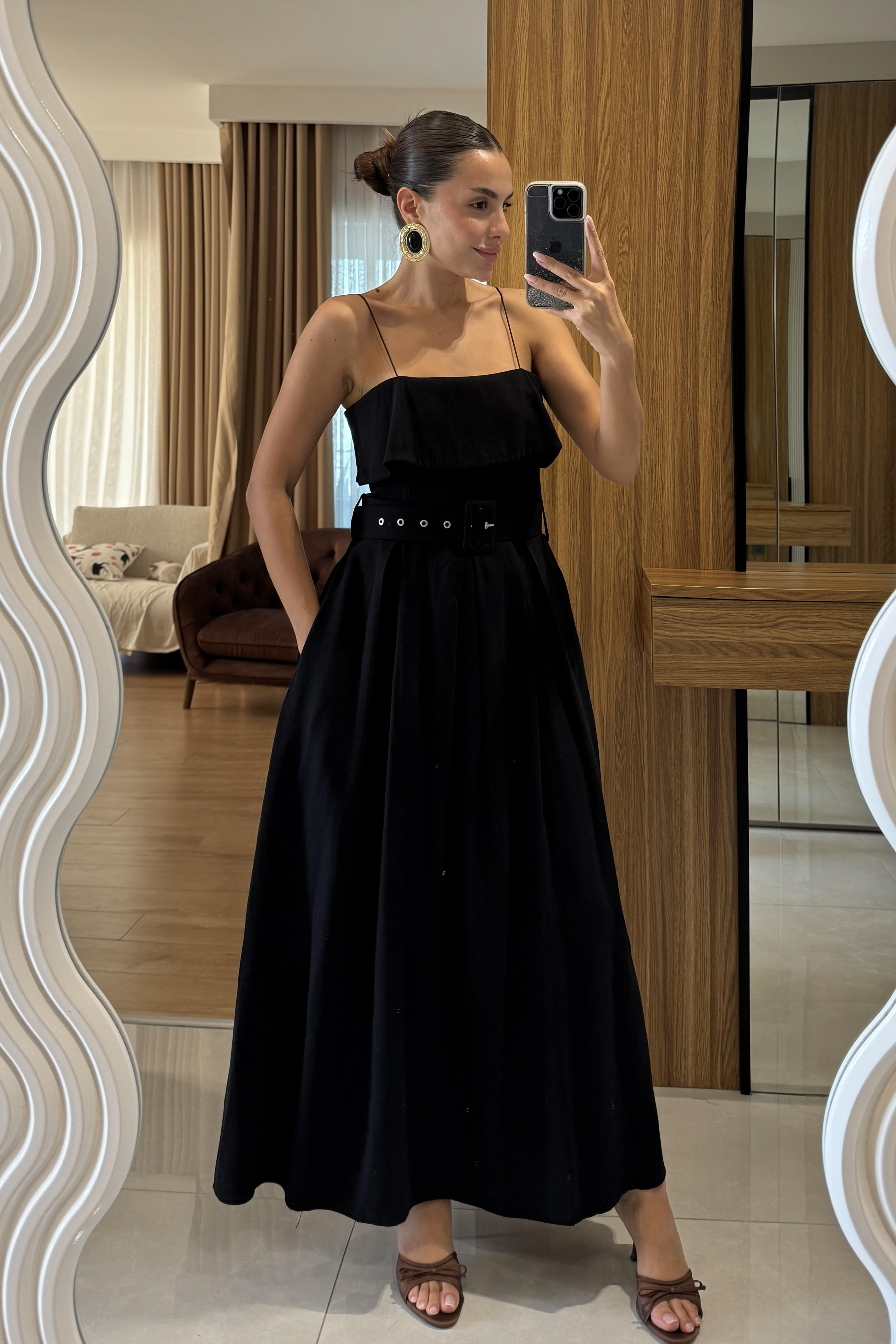 Vendida Siyah Kemerli Cep Detaylı Çan Elbise (Z4843)