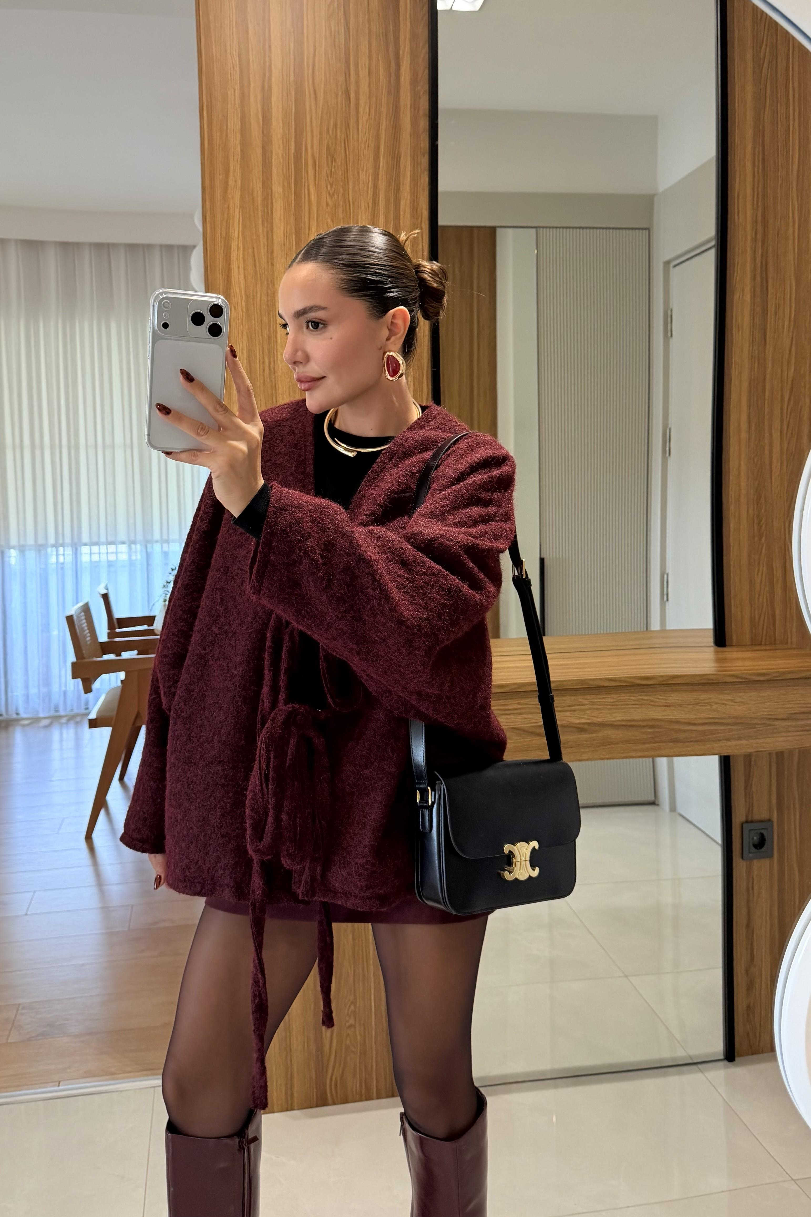 Victory Bordo Keçe Bağlamalı Ceket (Z5523)