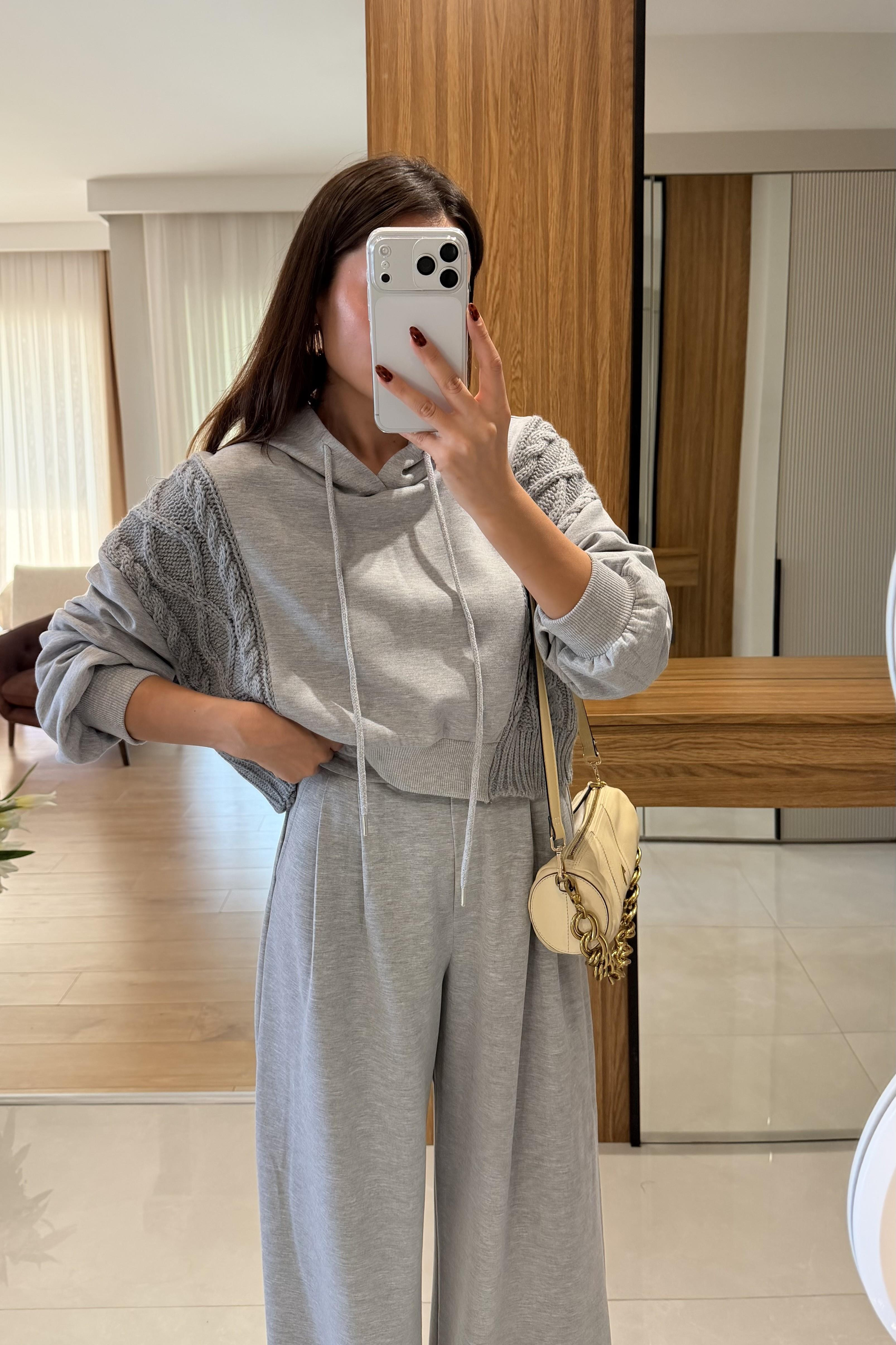 Viviana Gri Örgü Triko Detaylı Sweatshirt
