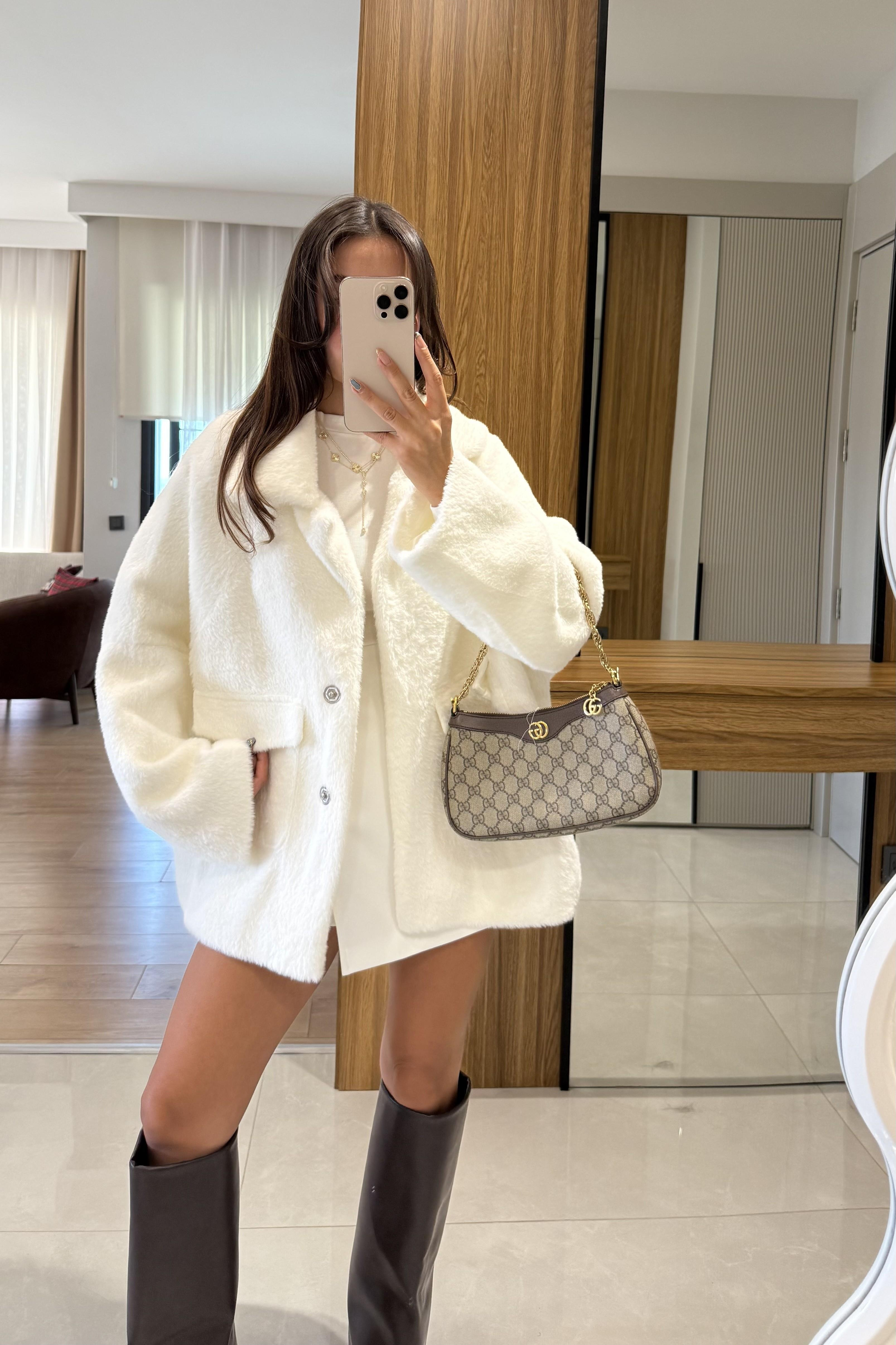 Winter Beyaz Premium Peluş Kaban (Z5290)